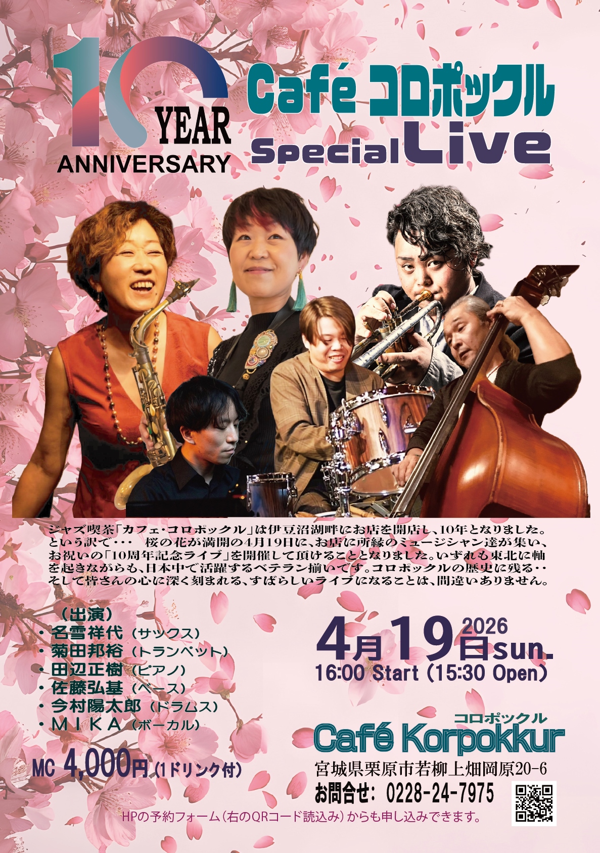 伊豆沼湖畔のジャズ喫茶「カフェ・コロポックル」はこの3月19日に満10年を迎えました。これを記念して、ゆかりのジャズミュージシャン達による「10周年記念ライブ」を開催します。