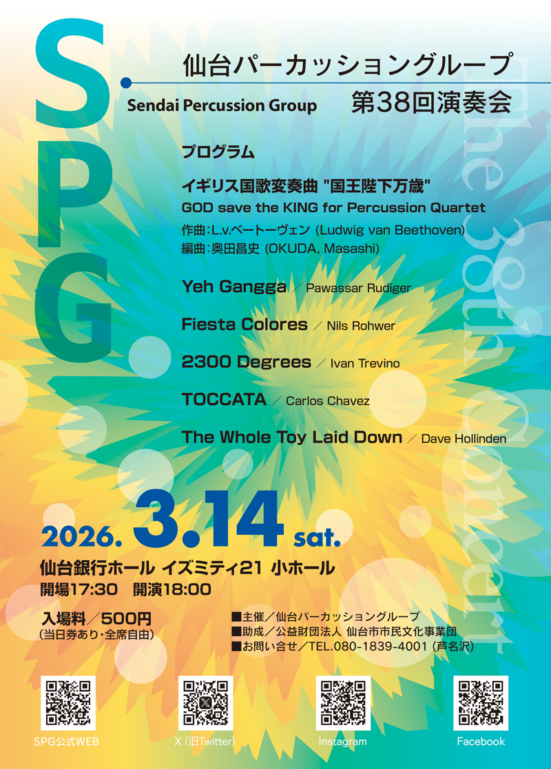 今年で38回目の演奏会を開催します。ぜひ打楽器アンサンプルの世界に浸りに来てください!