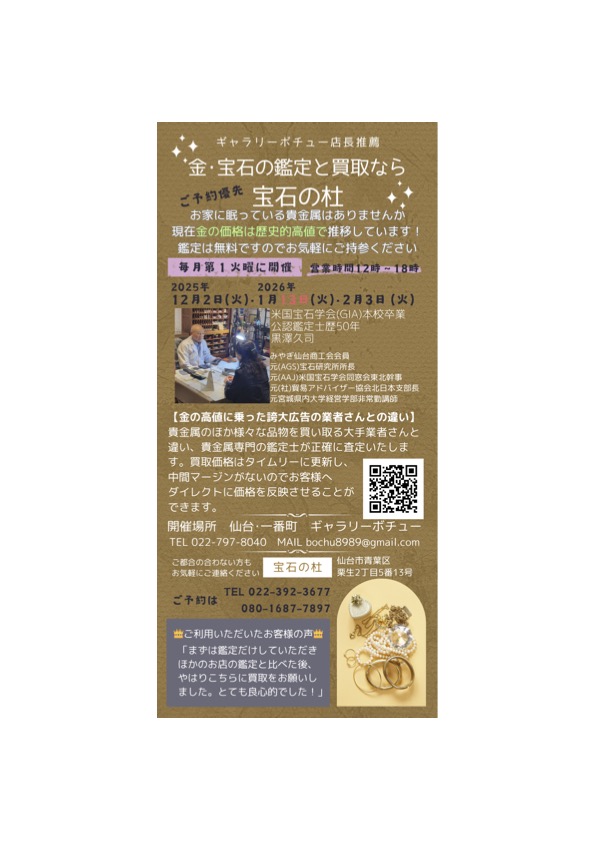 場所: ボチュー 022-797-8040 *ご予約者優先