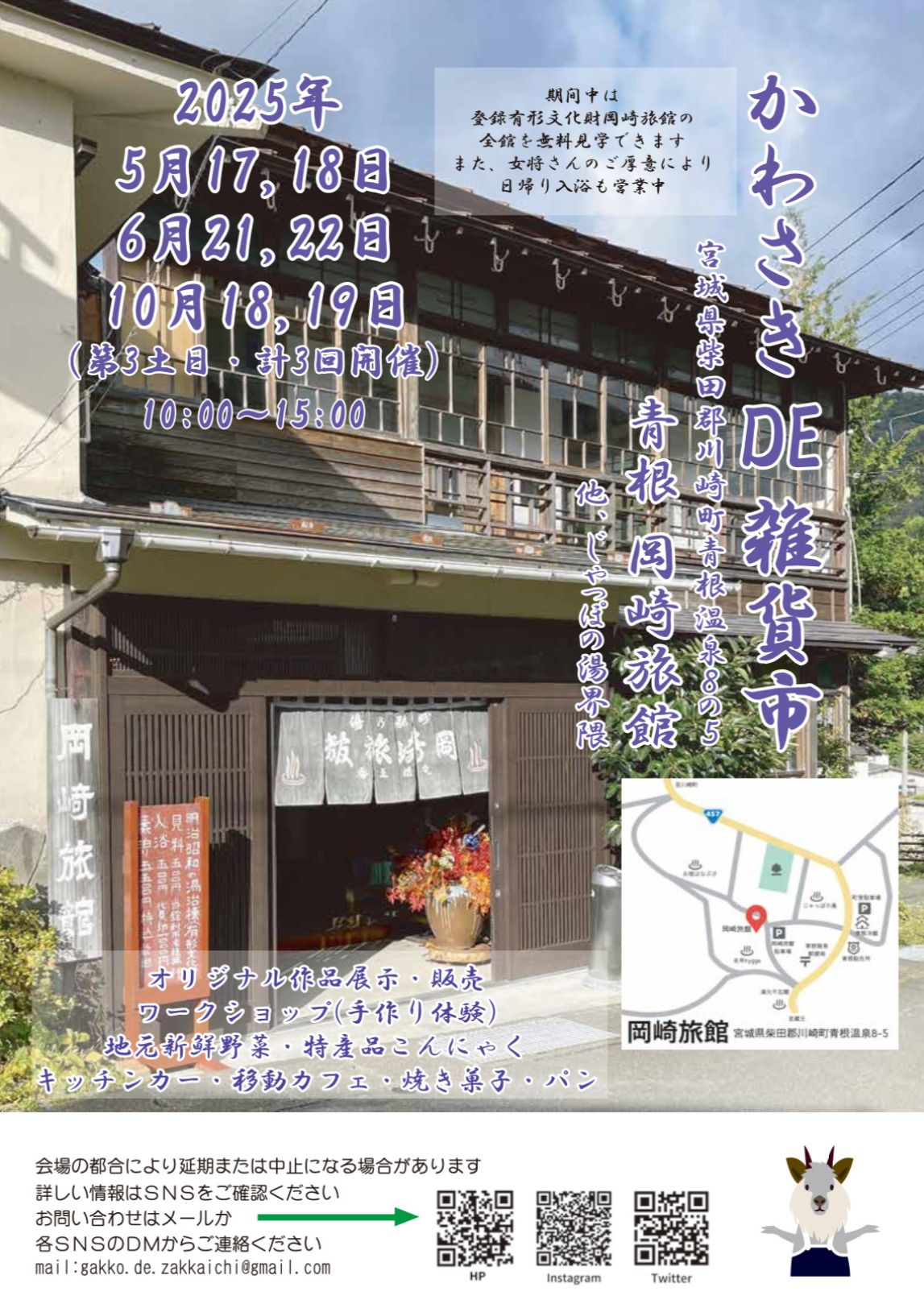 昨年、臨時で場所をお借りして好評だった青根地区にある岡崎旅館の2つの会場で開催します。