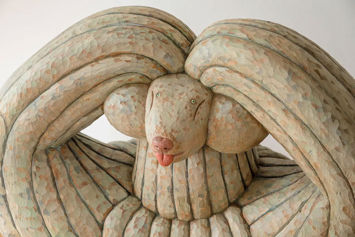 佐野美里さんは最新作の展示に加え、個人ドローイングセッションや地元のクッキーメーカーとのコラボレーションなど、様々なイベントを開催します。彼女は、楠を素材として木彫作品を制作。愛らしく、時に力強く生きている女性の魅力を犬の姿で表現している。木を命あるものとしてとらえ、木の個性を生かすよう、一彫り一彫りを大切にしながら作品を生み出している。