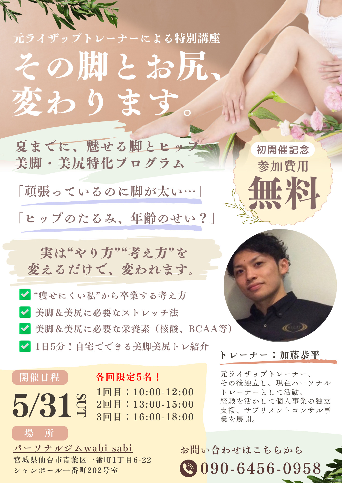 美脚・美尻に特化したボディメイクイベントを開催します?