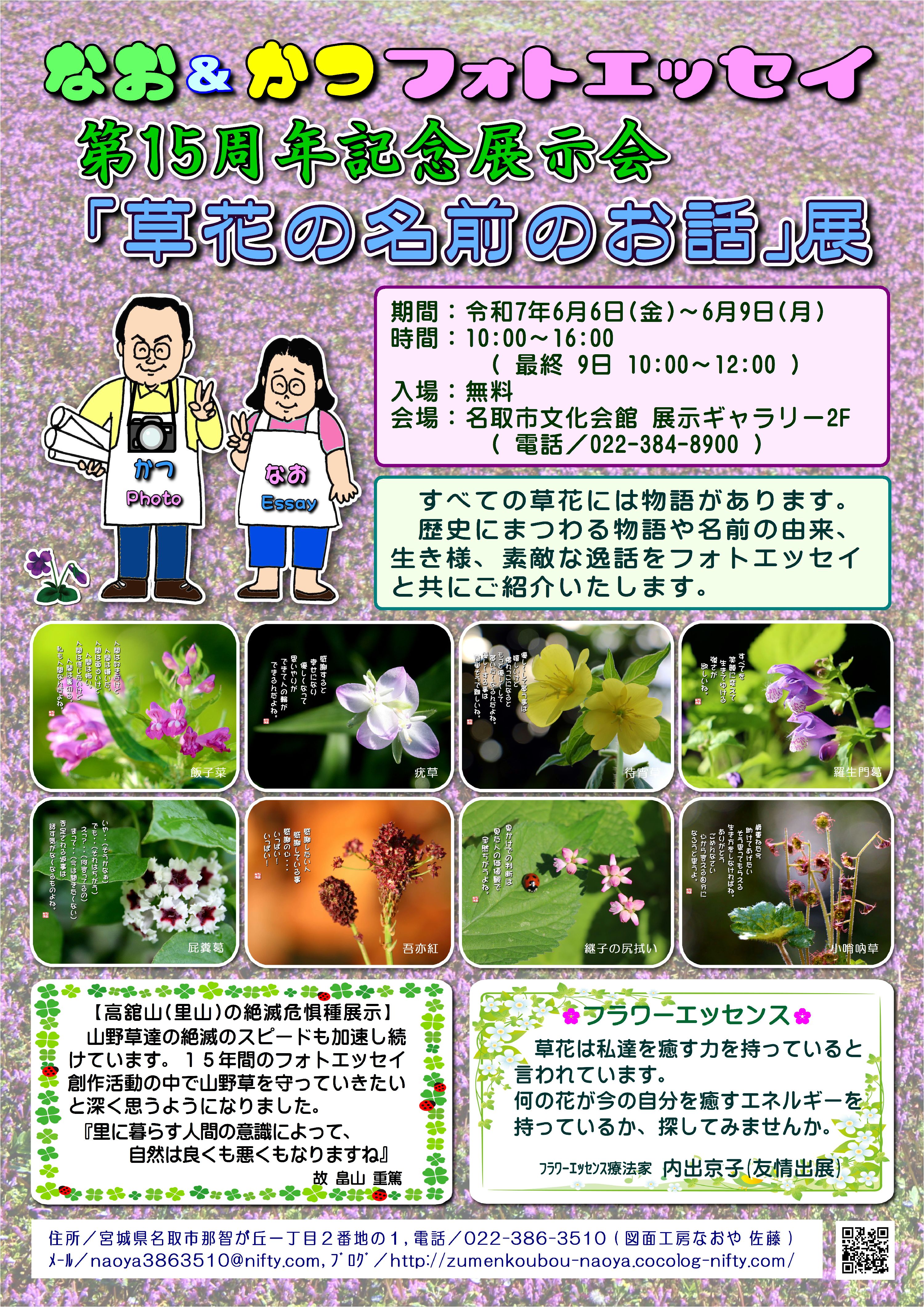 ①企 画 名 なおかつフォトエッセイ 第3回名取市文化会館個展「草花の名前のおはなし展」