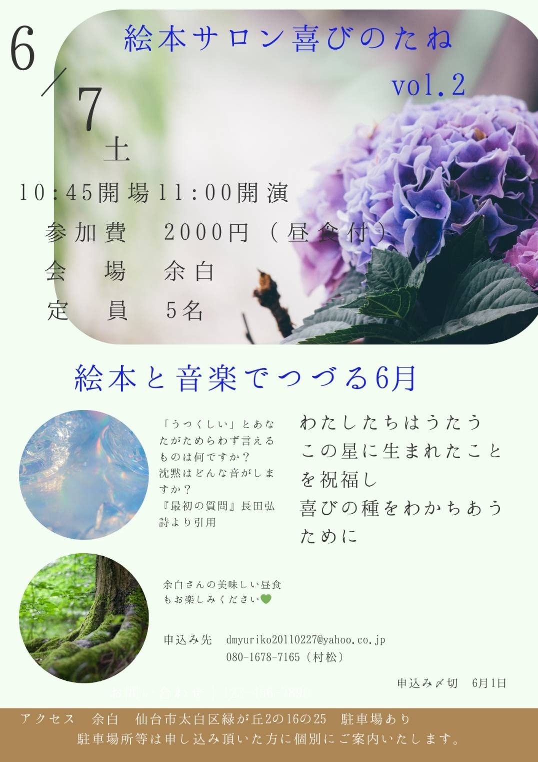 申込み先 dmyuriko20110227@yahoo.co.jp
