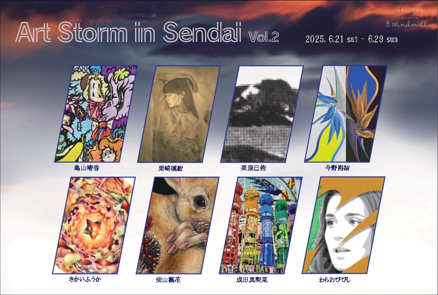 仙台市青葉区にある「Gallery Windmill(ギャラリーウィンドミル)」では、2025年6月21日(土)から29日(日)まで、現代アートグループ展【Art Storm in Sendai Vol.2】を開催いたします。