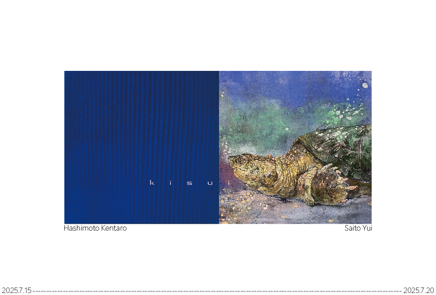 二人展「kisui」では、淡水と海水が混ざり合う「汽水域」という概念をもとに、二つの相反する要素が交錯する境界や、「青」に宿るナチュラルさとケミカルさといった両義性に目を向け、そこに潜む表現の可能性を探ります。