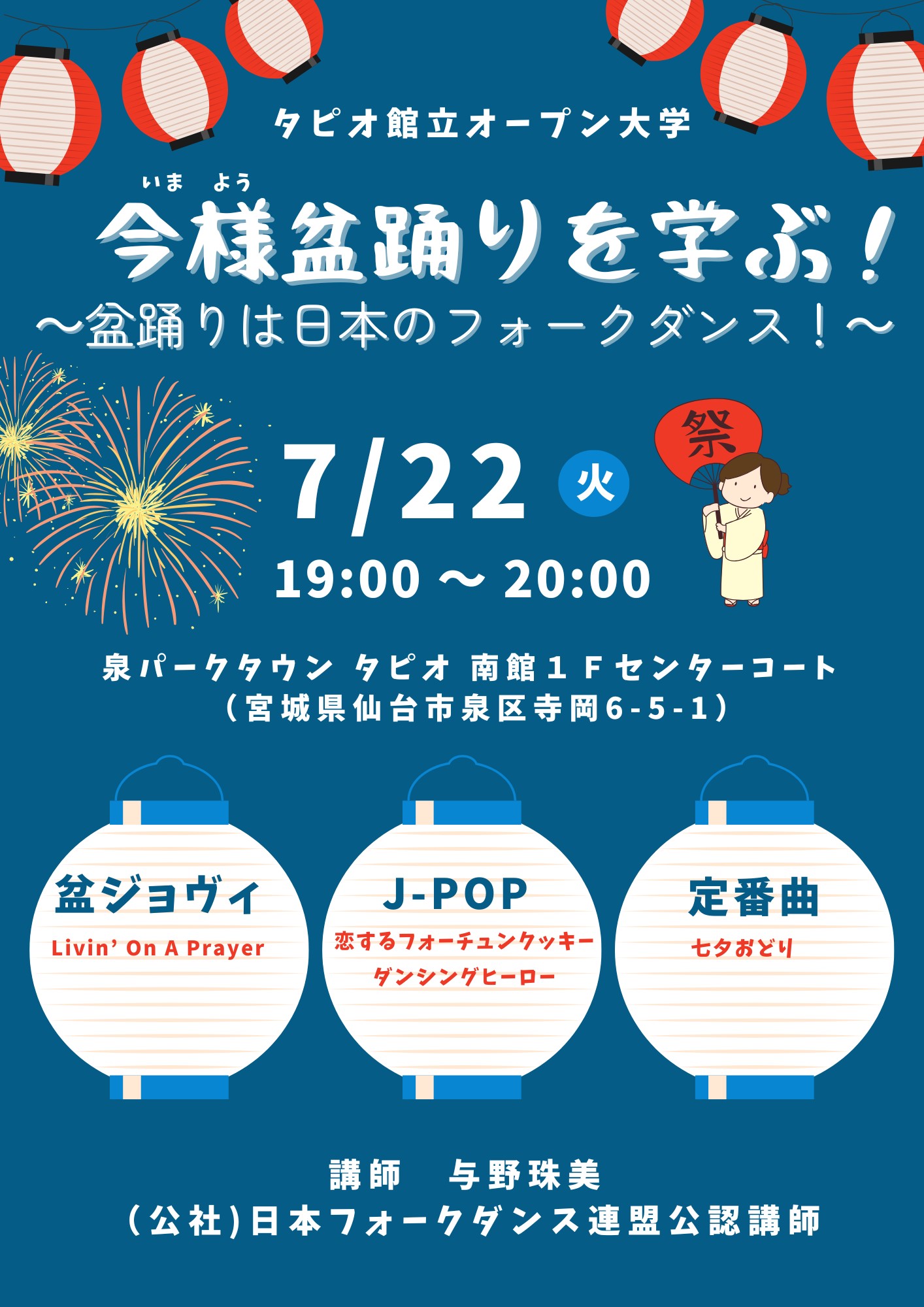 今様盆踊りを学ぶ~盆踊りは日本のフォークダンス! タピオ館立オープン大学