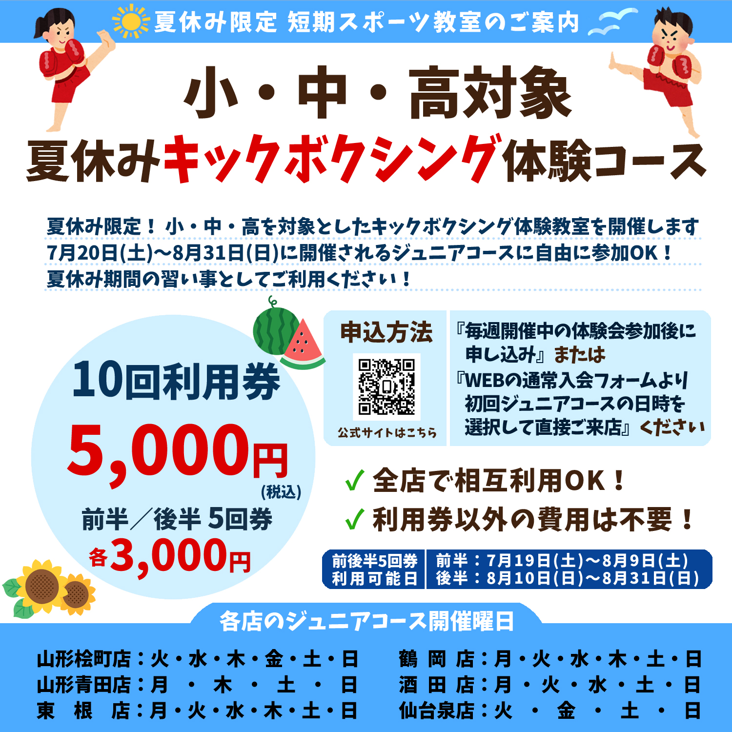夏休みキックボクシング体験コース【小・中学生・高校生対象】