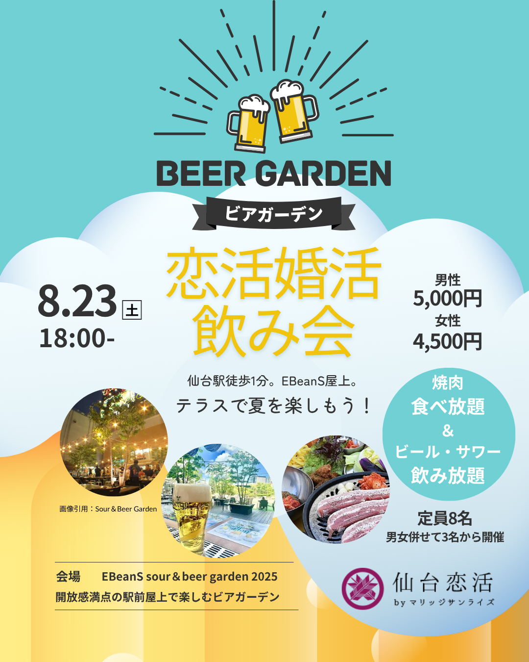 仙台駅前のイービーンズ屋上ビアガーデンにて恋活婚活飲み会を開催します☆