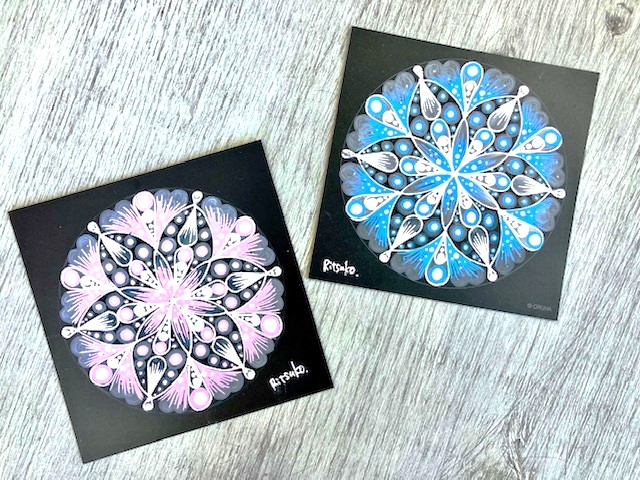 ペンと画用紙を用いた手書きの曼荼羅原画の展示会、