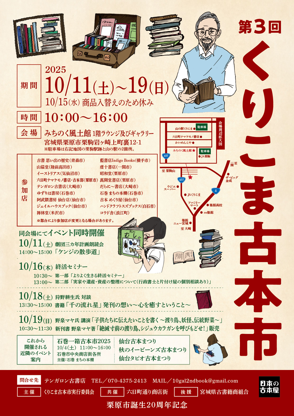 昨年大好評だった「くりこま古本市」を今年も栗原市栗駒の六日町通り商店街で開催します。