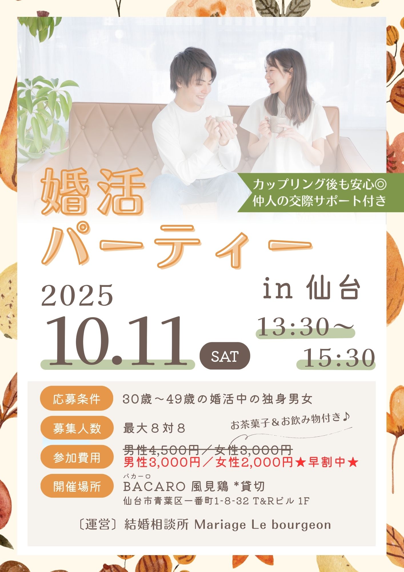 秋の婚活パーティー開催のご案内♪♪