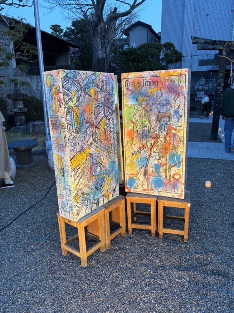 塩竈在住のアーティスト・sdla/SATによる塩竈の風景を題材とした提灯展示です。提灯には、3人の子供が「月灯り」「花灯り」伝説を調査するために、御釜神社、港、塩竈市杉村惇美術館の周辺エリアを探索する場面が作者のユニークな想像力によって描かれます。是非御釜神社へと足をお運びください。