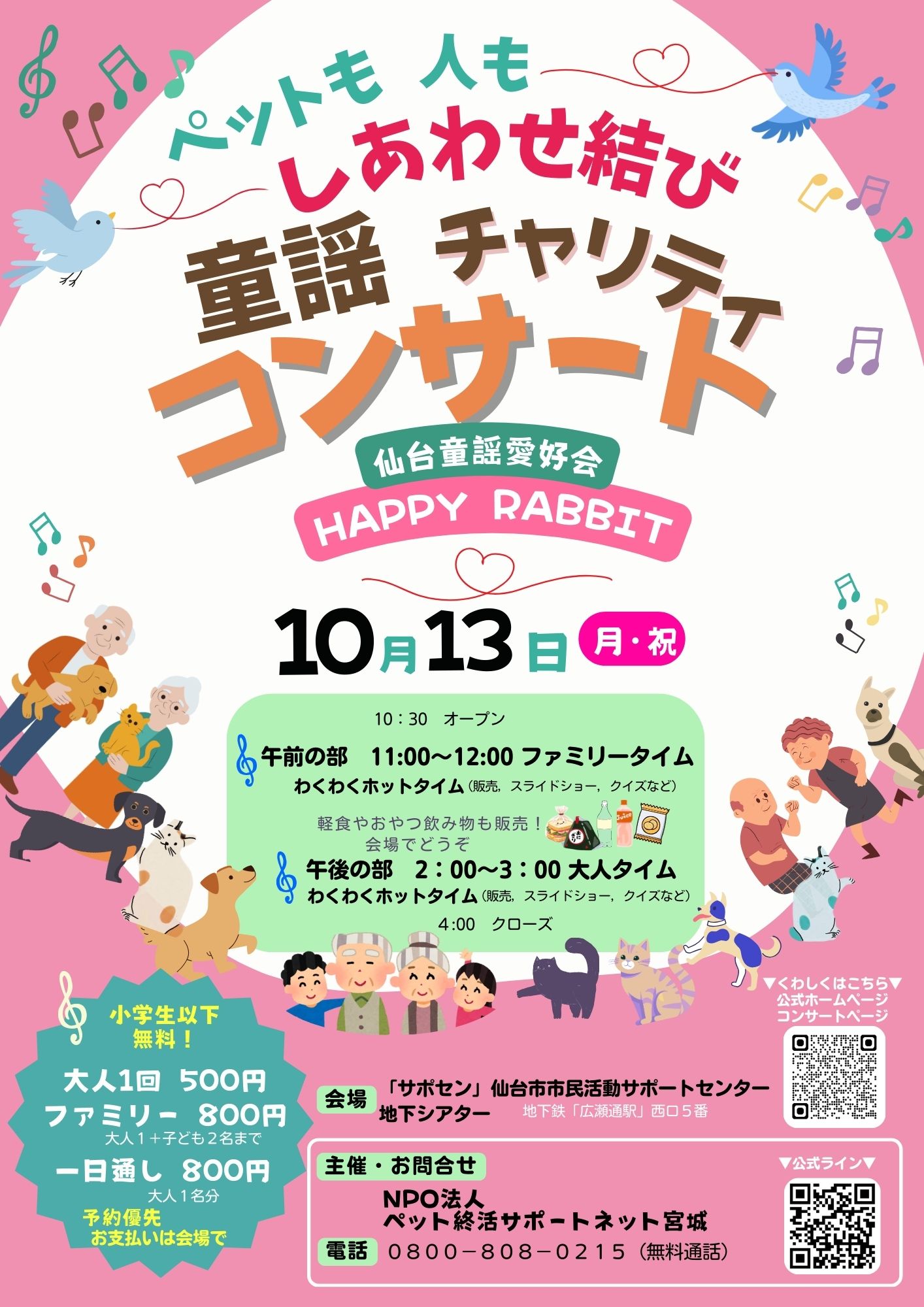 仙台童謡愛好会HAPPY RABBIT出演の童謡チャリティコンサートです。