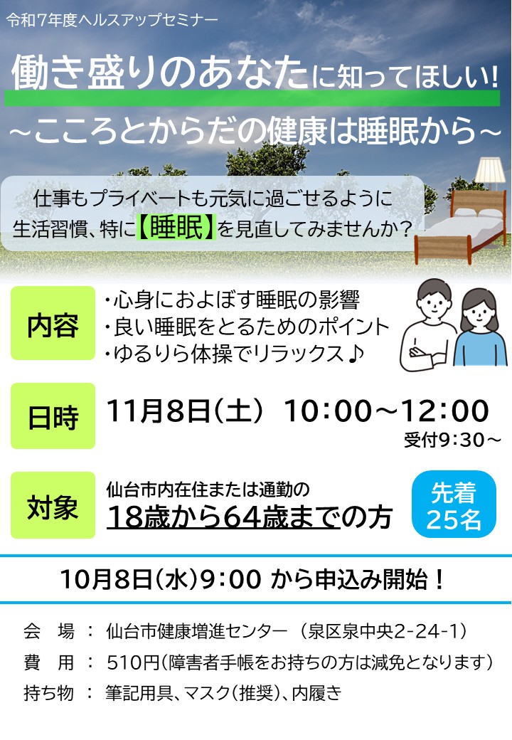 11/8「働き盛りのあなたに知ってほしい!~こころとからだの健康は睡眠から~」