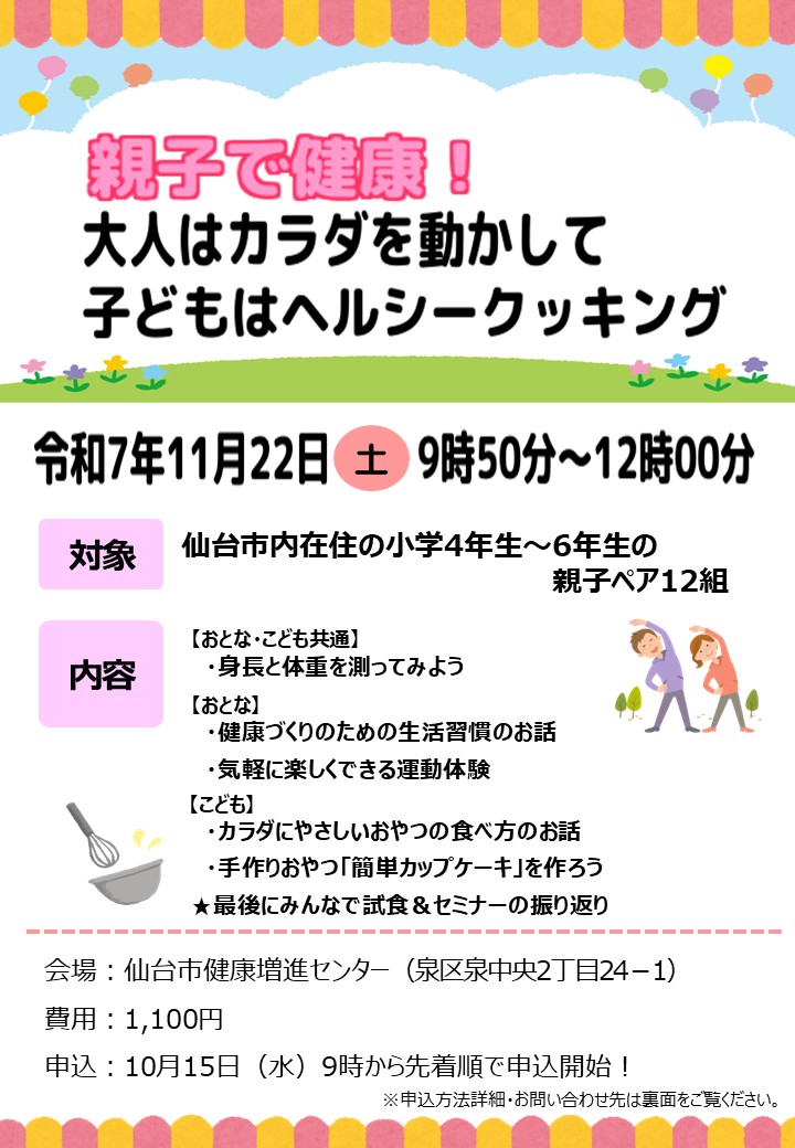 11/22「親子で健康!大人はカラダを動かして子どもはヘルシークッキング」