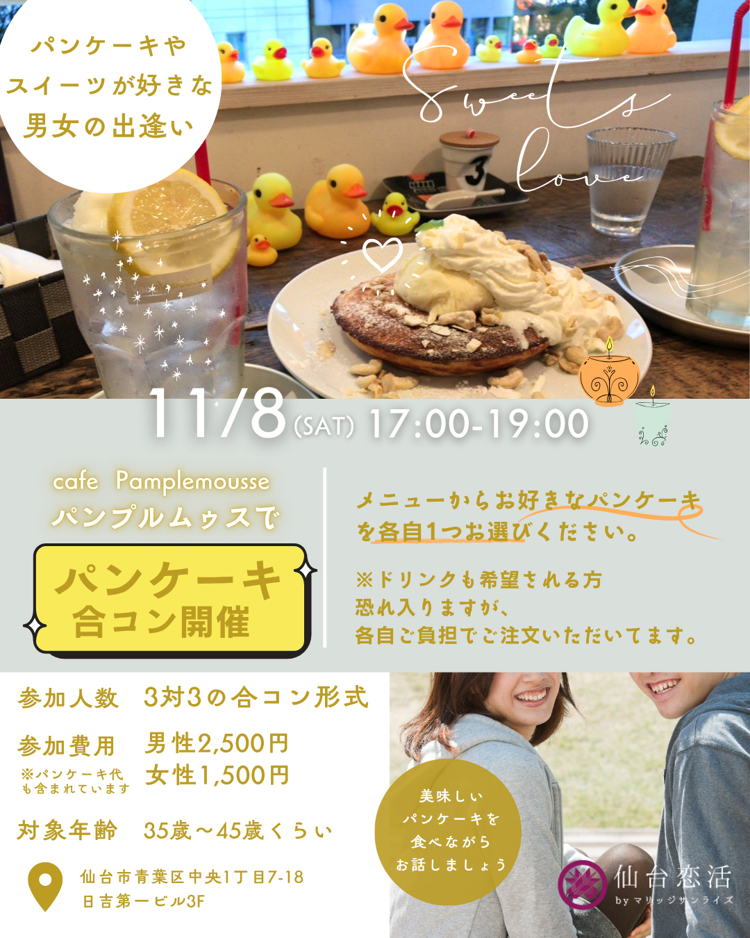カフェパンプルムゥスでパンケーキ合コンを開催します☆