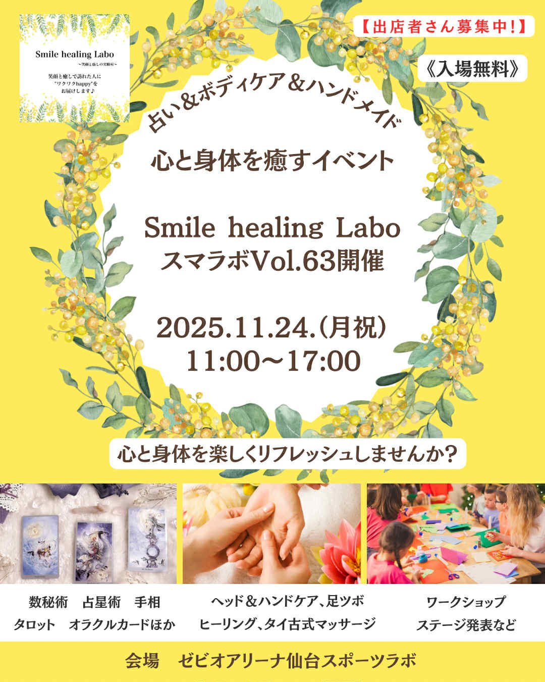心と身体を癒すイベント☆スマラボVol.63開催!《占い&ボディケア・ハンドメイド販売・ワークショップ》楽しく学べる講座もあります♪