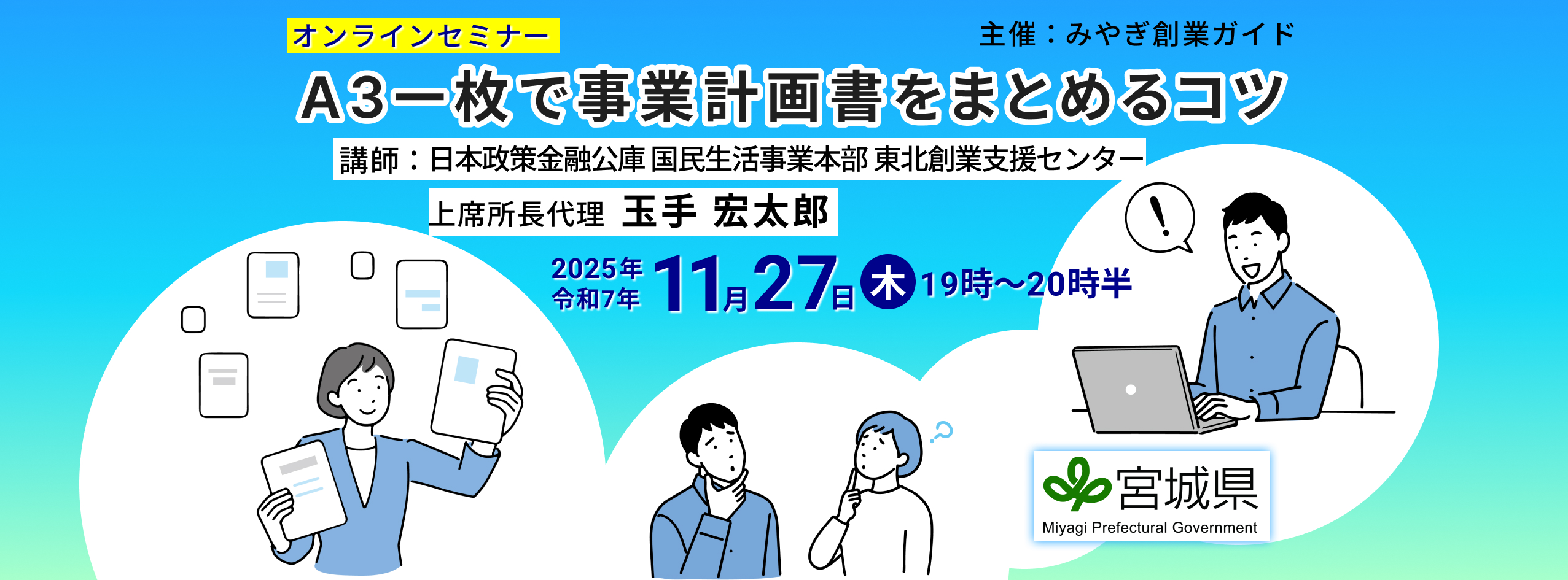 対象:宮城県内で創業を目指す方・融資相談を検討している方