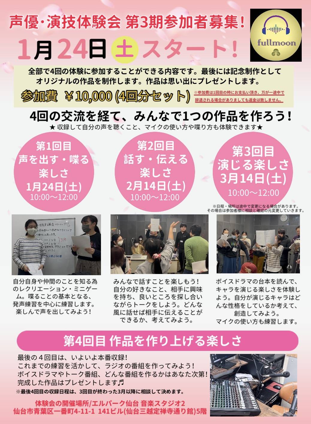 2026年1月から開始する声優演技体験会の第三期生を大募集します!内容としては↓