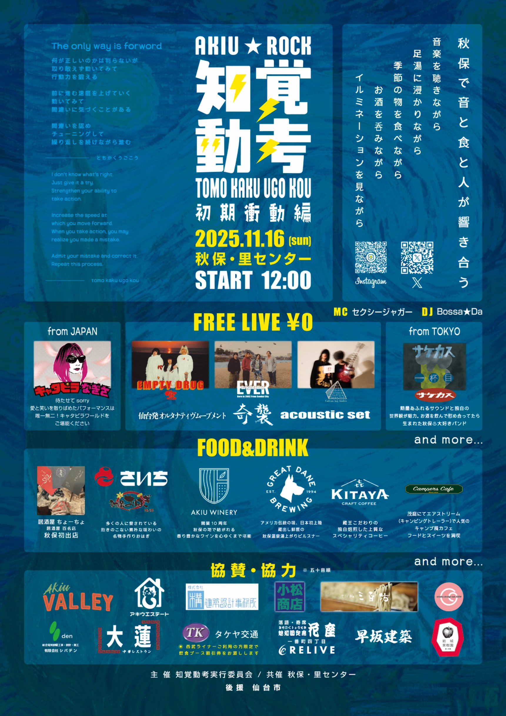 『AKIU★ROCK 知覚動考 ―初期衝動編―』11月16日(日)秋保・里センターで開催!