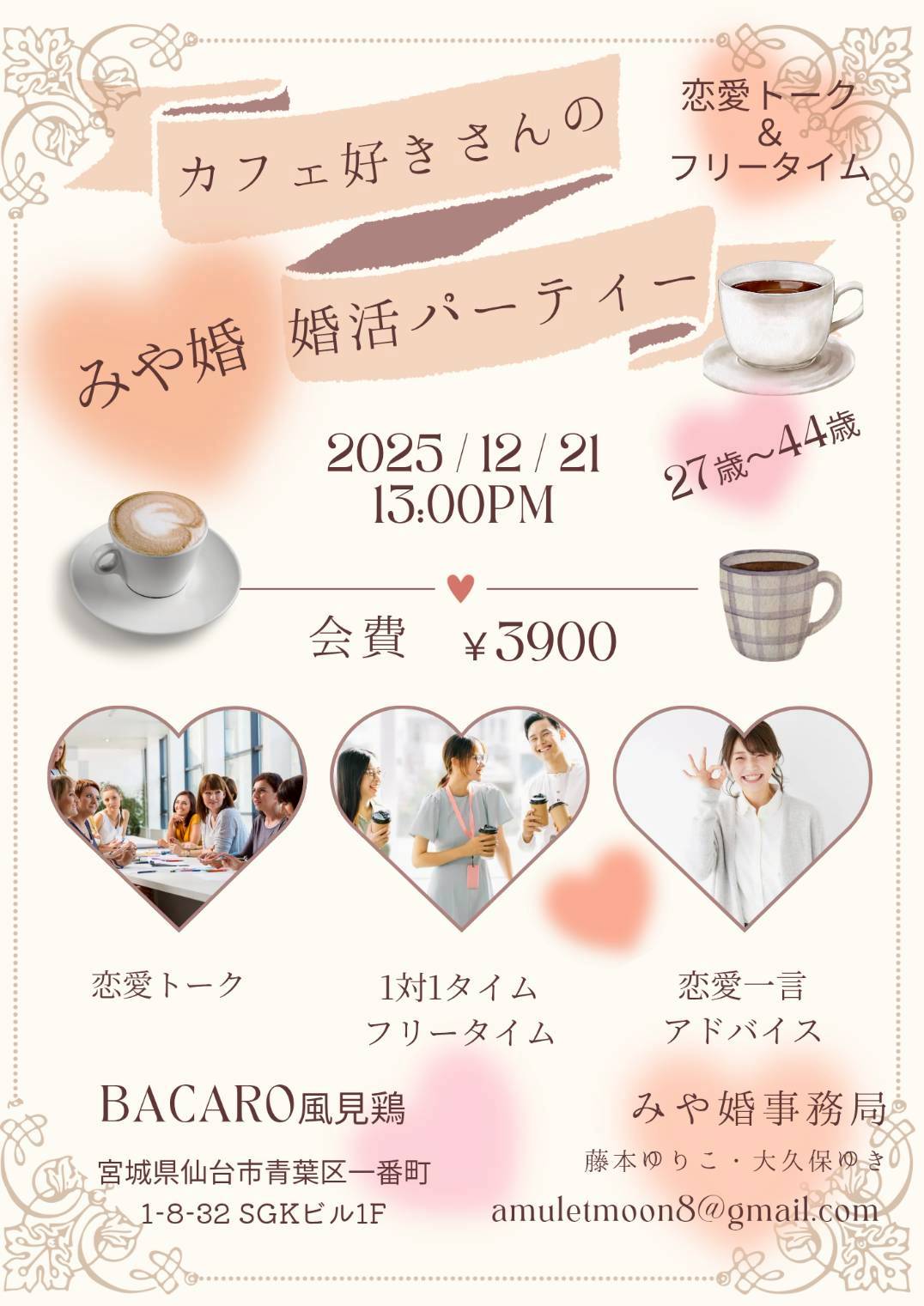 14:40~ 恋愛一言アドバイスブース(希望者のみ / 20分 500円)