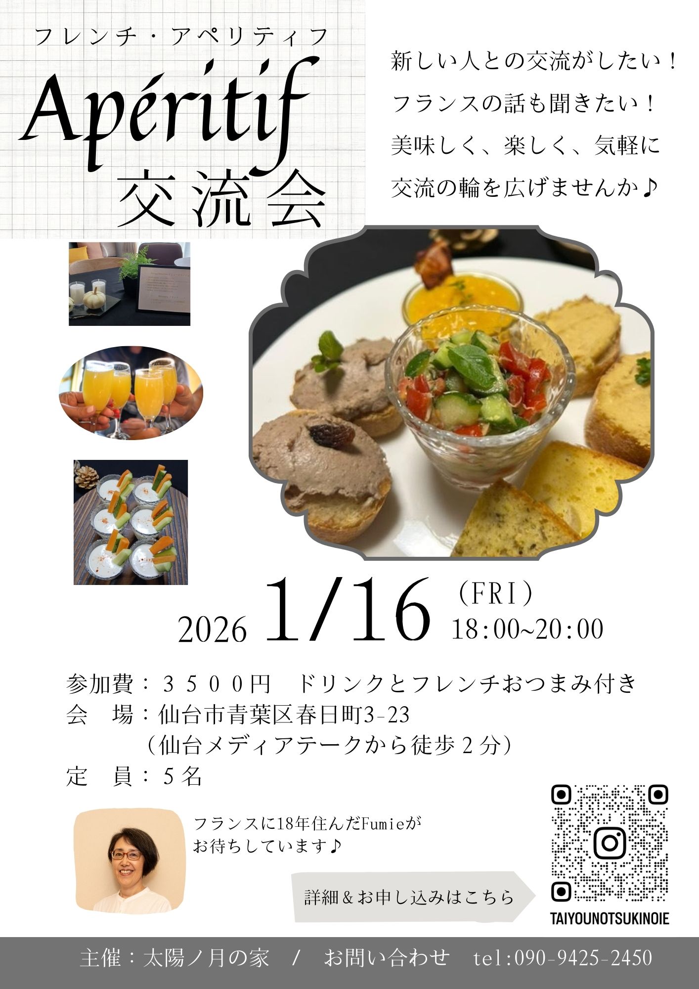 【参加費】:¥3500 フレンチおつまみ&ドリンク付き