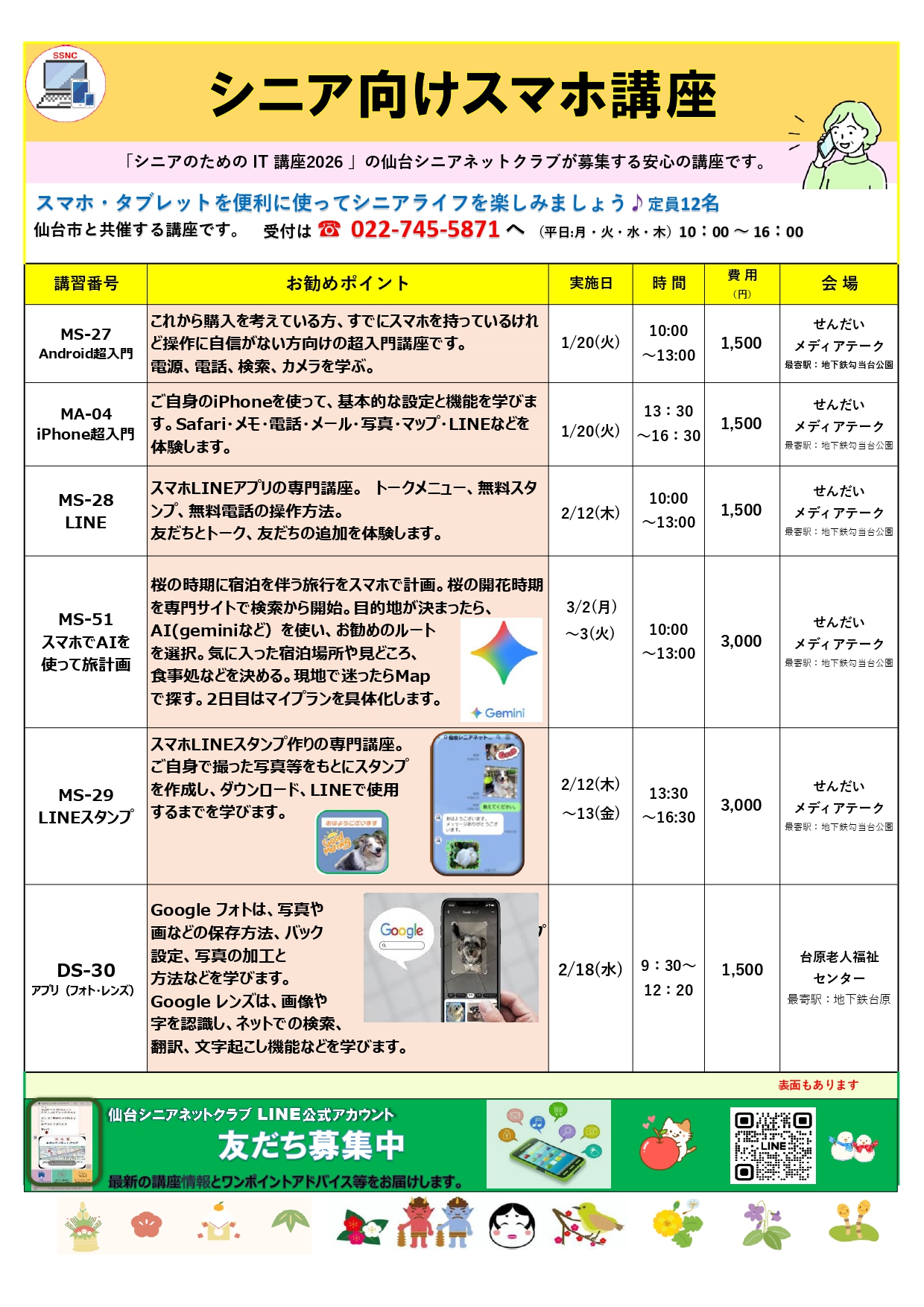 「シニアのための IT 講座 2026]」の仙台シニアネットクラブが