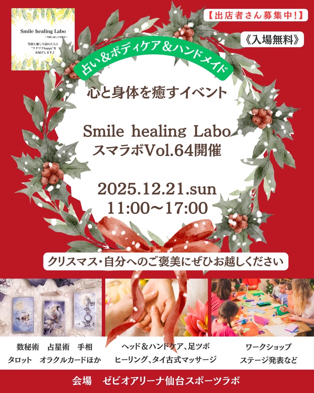 心と身体を癒すイベント☆クリスマススマラボVol.64開催!《占い&ボディケア・ハンドメイド販売・ワークショップ》楽しく学べる講座もあります♪