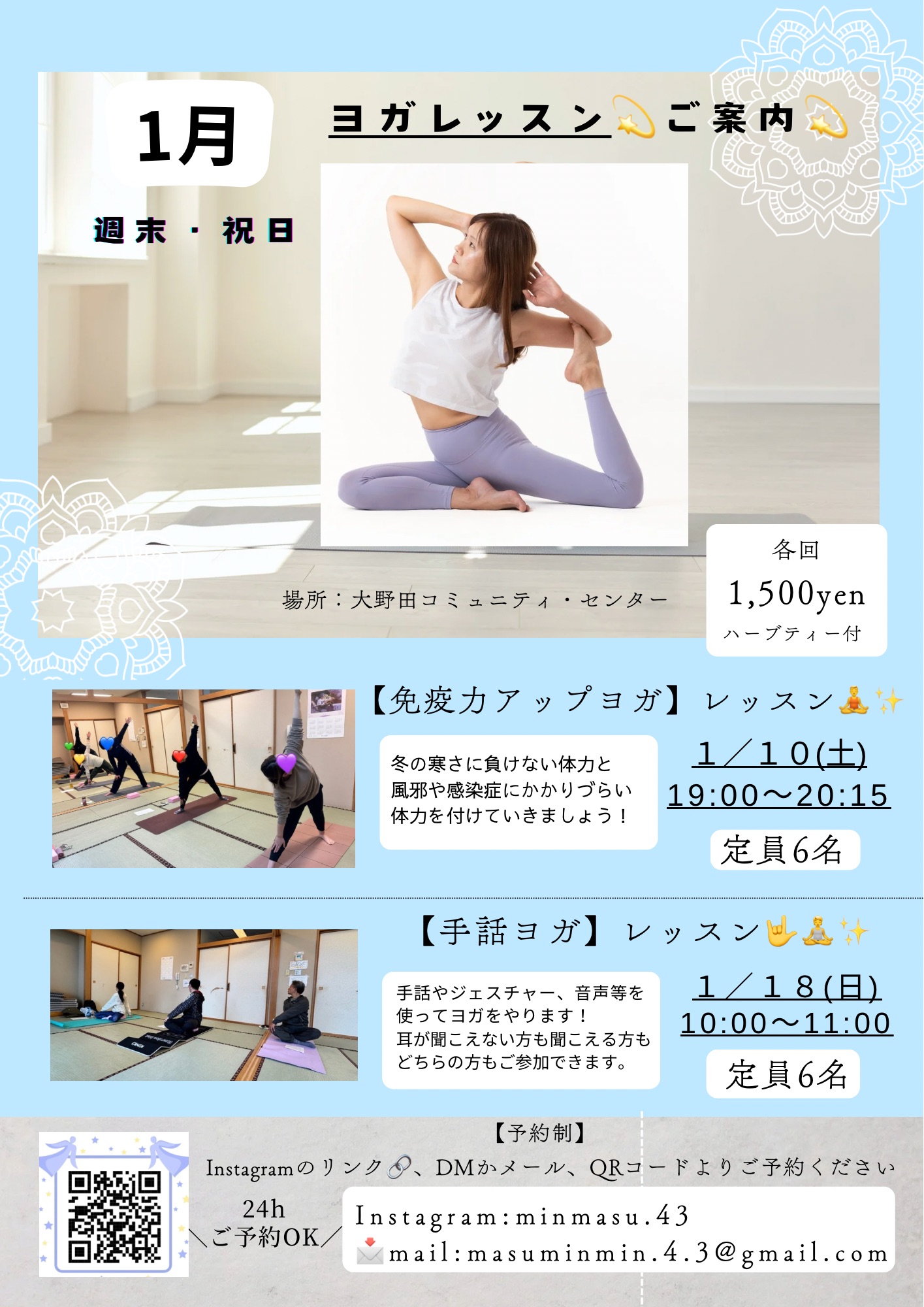 寒い冬だからこそ、ヨガで呼吸をたくさんして、自律神経を整え、身体を温めて免疫力をアップさせていきましょう!