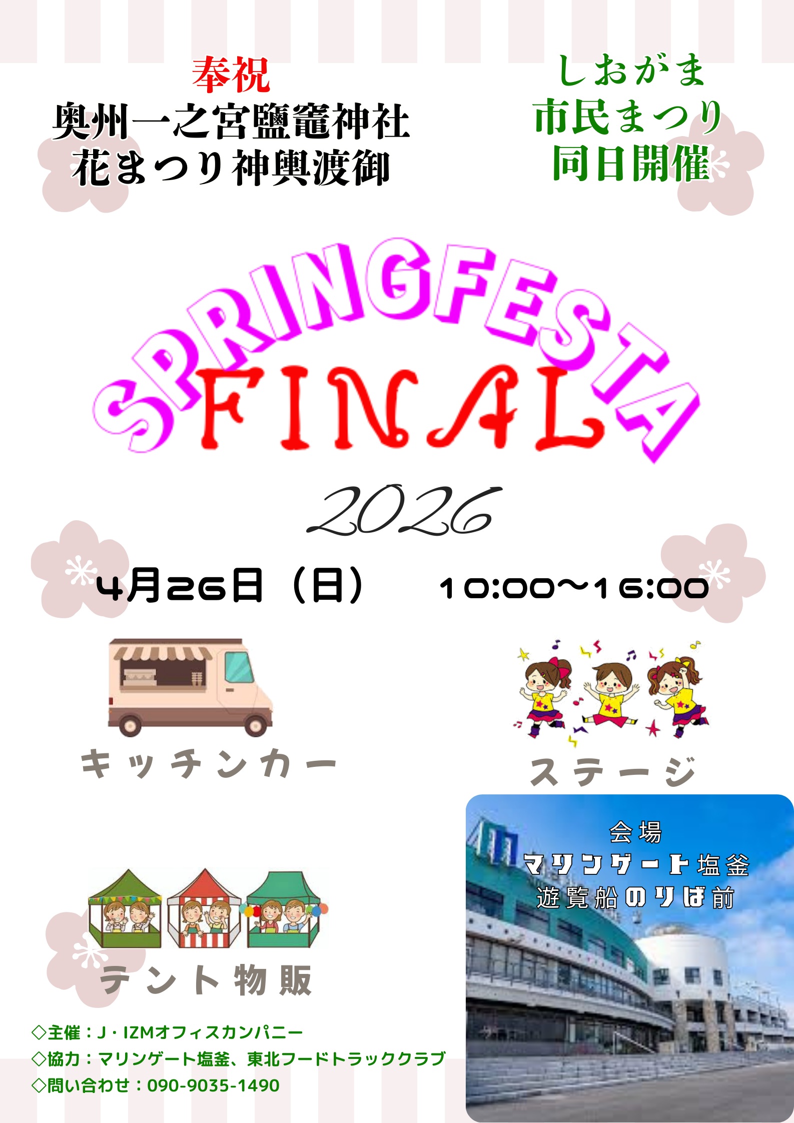 ※当日は、奥州一之宮鹽竈神社花まつり神輿渡御、しおがま市民まつりも同日開催されますので、