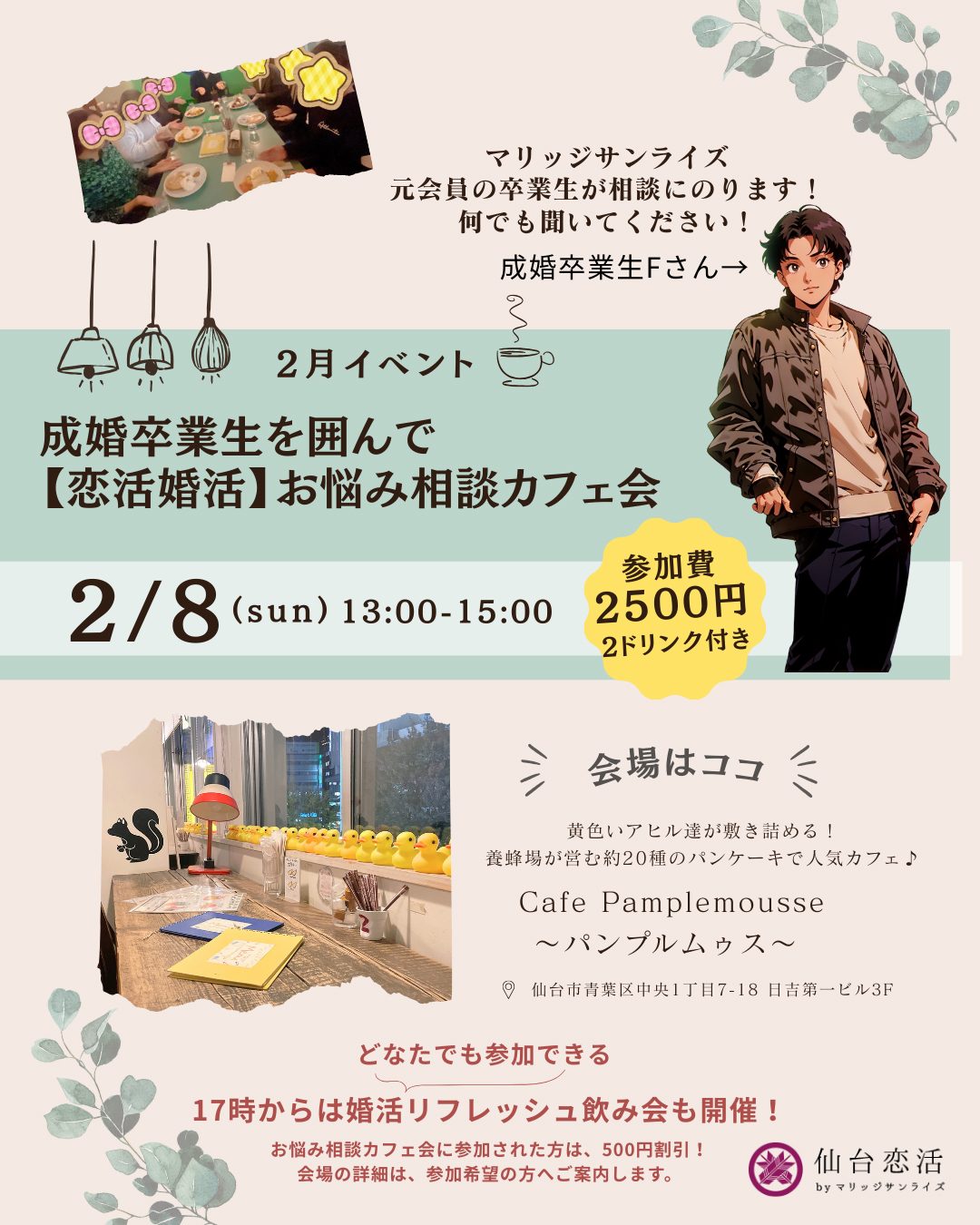17時から「婚活リフレッシュ飲み会」をご用意してます。
