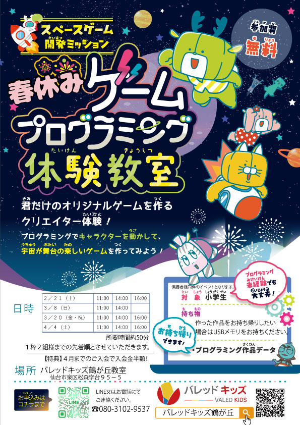 春休み!ゲーム作り、プログラミング体験教室
