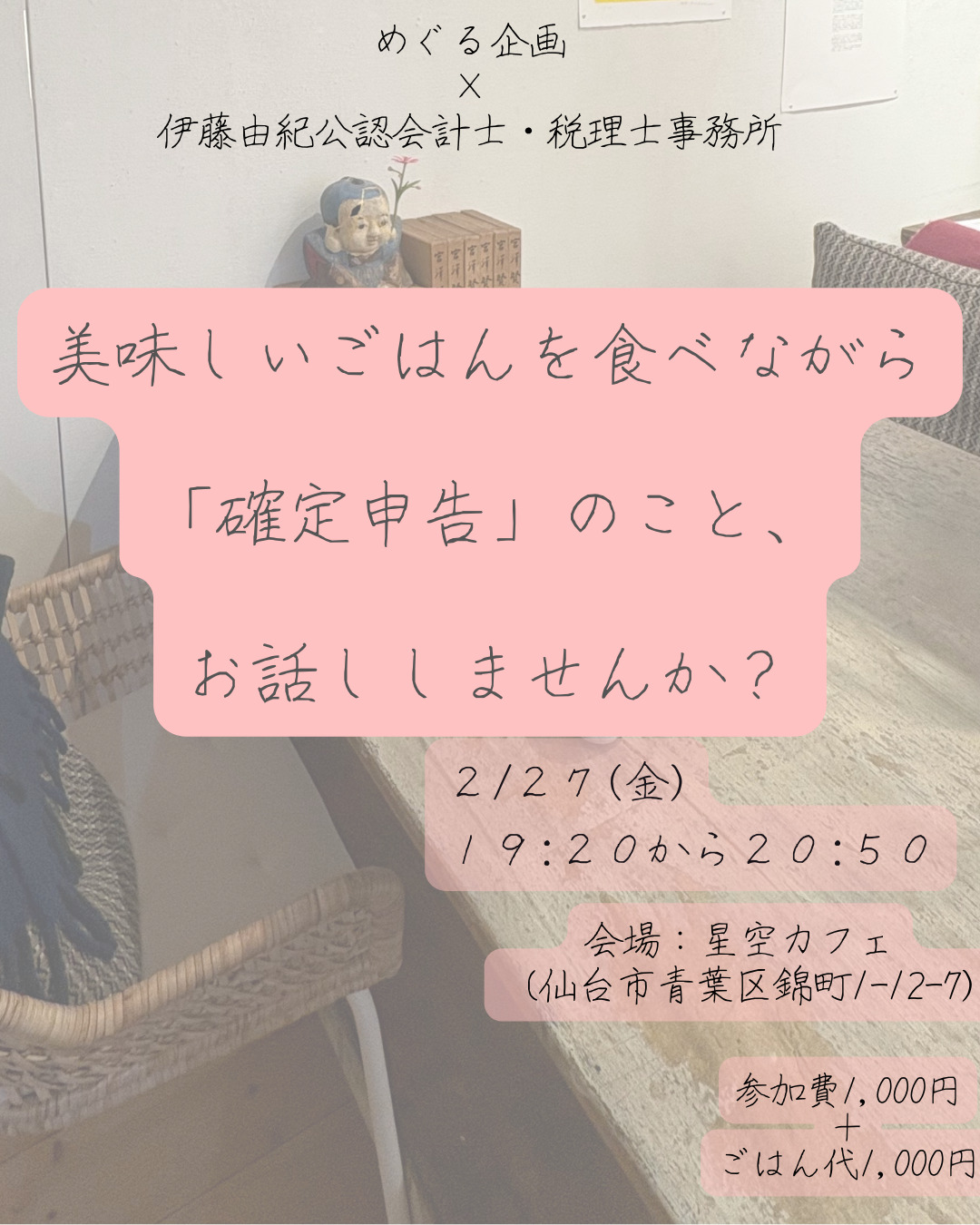 めぐる企画×伊藤由紀公認会計士・税理士事務所 「美味しいごはんを食べながら確定申告のこと、お話ししませんか?」