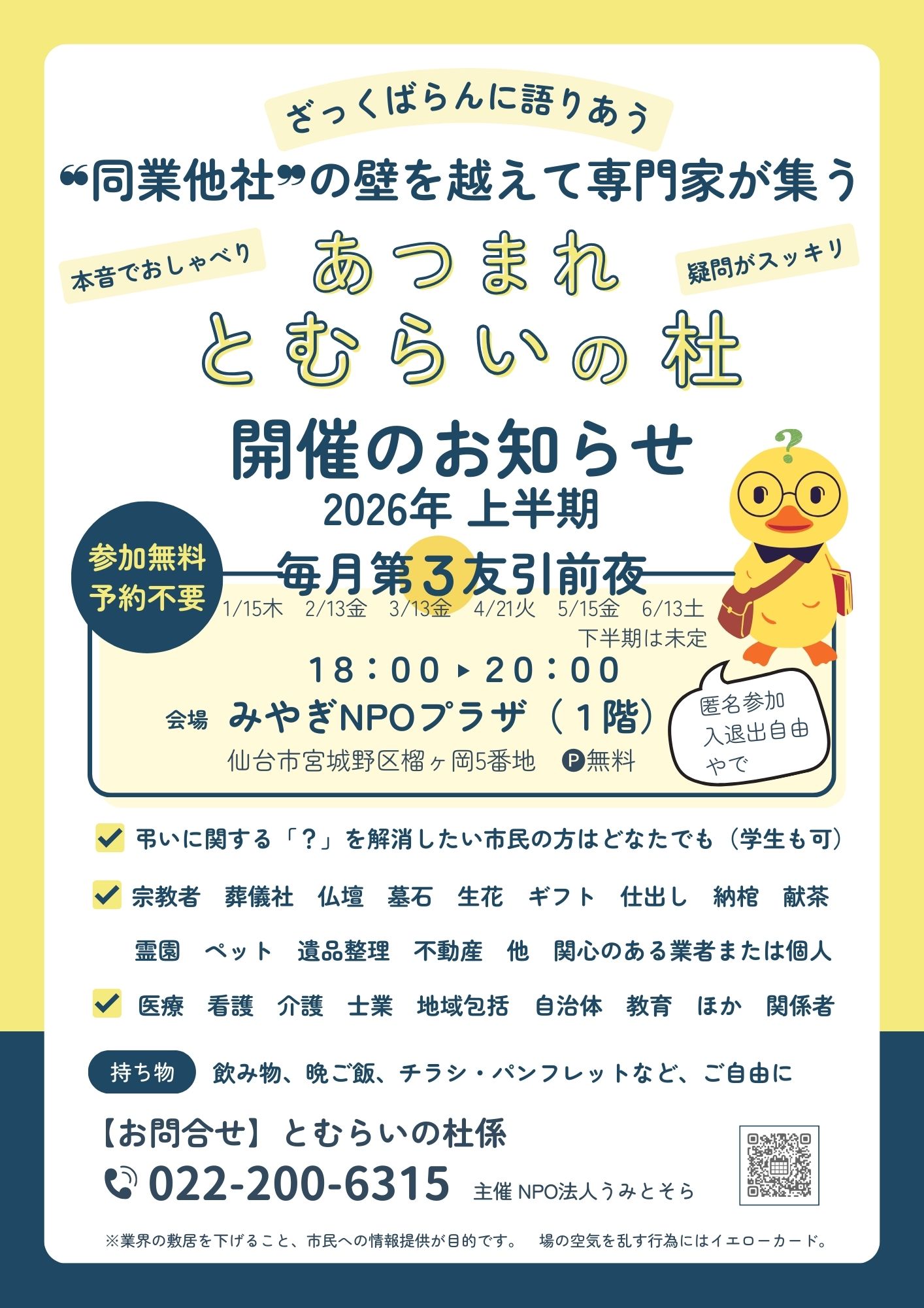 ・弔いに関する「?」を解消したい市民の方はどなたでも(学生も可)