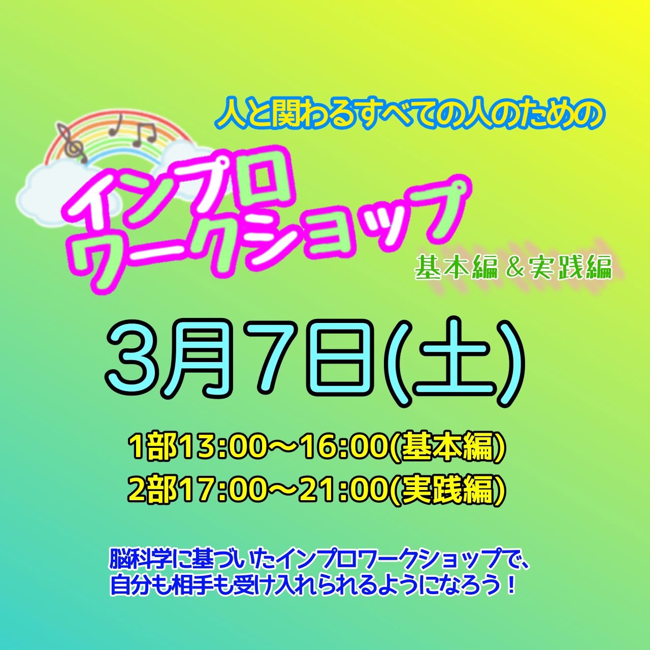 また人生には台本がありません。筋書きのないドラマです。誰もが即興で人生を歩んでいます。インプロは日常生活や仕事、コミュニケーションにも応用していけます。