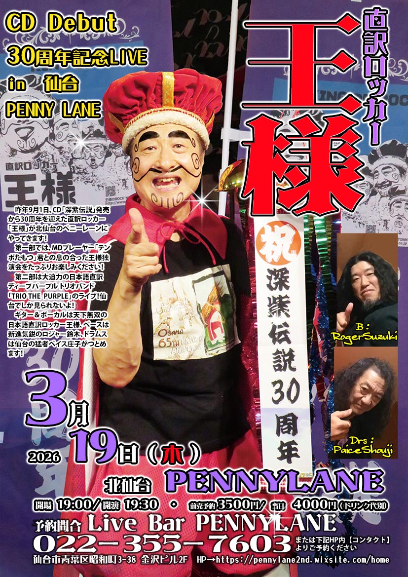 3/19(木)直訳ロッカー「王様」ライブin北仙台ペニーレーン